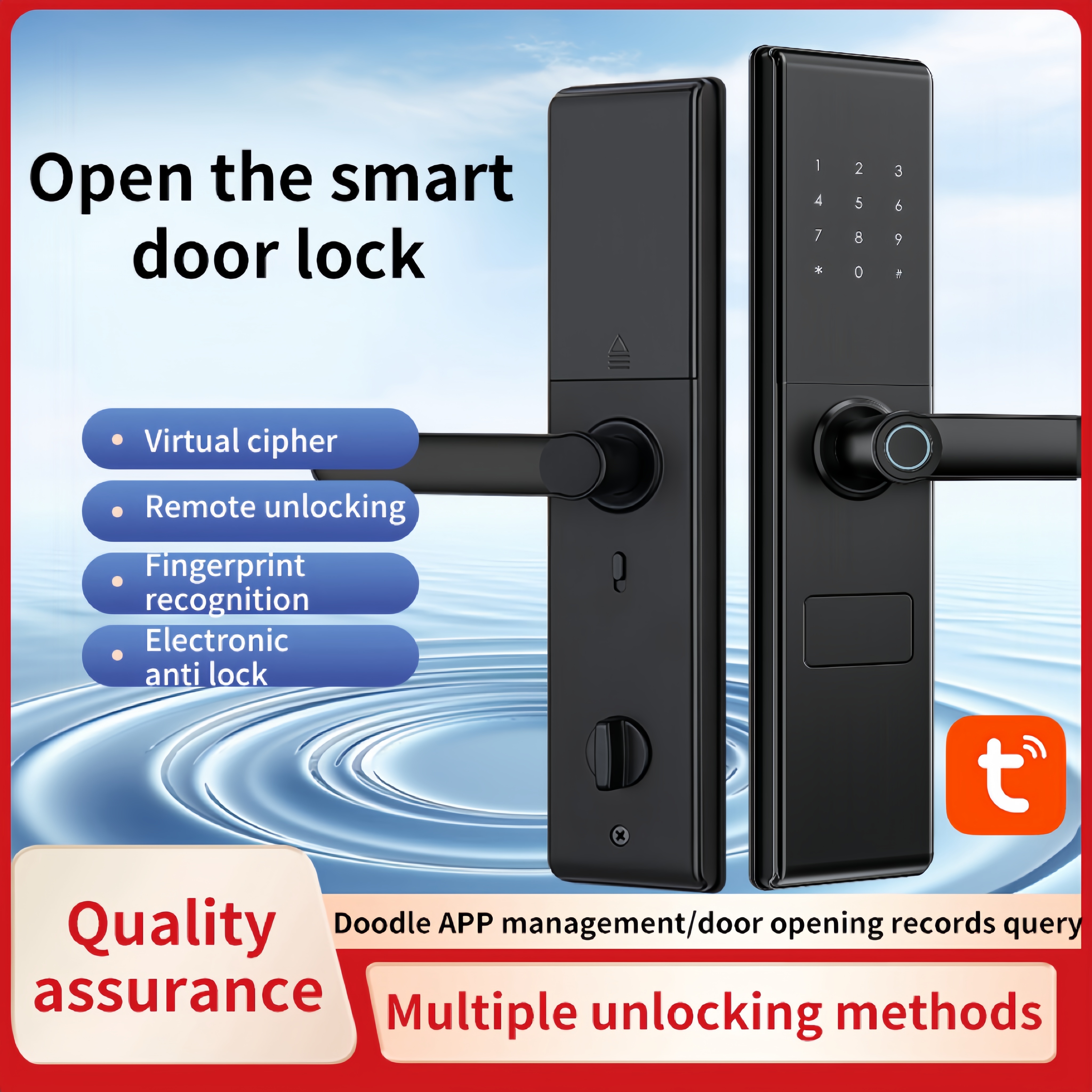 * 다중 잠금 해제 옵션 — 지문, 비밀번호, 키 카드, 기계식 키 및 Tuya 앱 원격 제어를 지원합니다.
